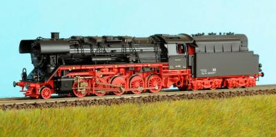 Dieses Modell gibt die 44 611 wieder, die beim Bw Karl-Marx-Stadt Hilbersdorf beheimatet war. Charakteristisch sind die Versuchswindleitbleche mit denen die Lok noch in den sechziger Jahren unterwegs war. Das Modell entstand auf Basis der Roco 44. Alle Änderungen werden berücksichtigt. Neu ist der genietete Tender 2'2'T32