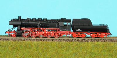 Das Modell entstand auf Basis der Roco 44. Berücksichtigt wurden hierbei die typischen Leitungen am Kessel, die zweite Luftpumpe, der zusätzliche Luftkessel und natürlich der Bunkeraufsatz des Tenders. All diese Teile bestehen aus Messingguss.